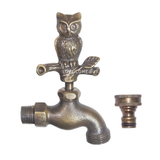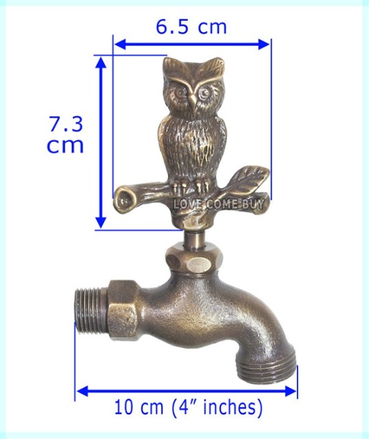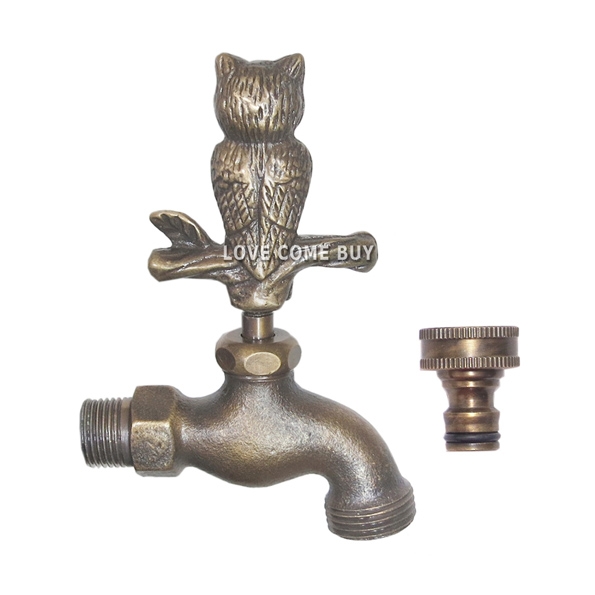 Love Come Buy Solid Brass Owl Garden Outdoor Faucet 4 inches L with a Brass Connector
